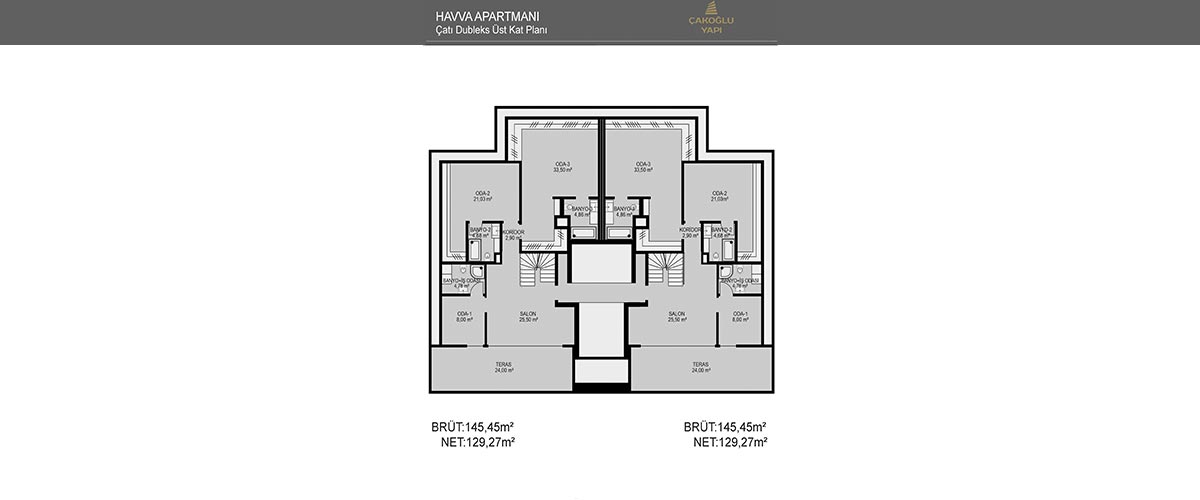 - Dubleks Daire: 4+1 Net: 243,41m² Brüt: 290,90 m² Bulunduğu Kat: 12